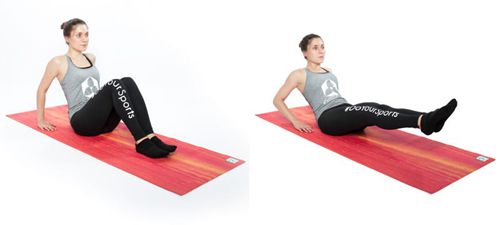 腿抬高:现在你向前伸展双腿直到他们几乎触地。这个位置保持几秒钟。然后你弯曲双腿。
