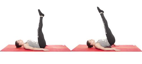 第二个变种是躺着时抬腿。这样做的优点是背部更舒适,因为它轻轻地放在垫子上,因此不能进入空心背部。