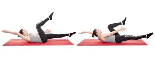 转动臀部:慢慢将弯曲的双腿向一侧移动,转动臀部并将下背部略微抬离地面。尽可能地降低你的腿,直到你几乎触地。在最后的位置,你会保持一小段时间,然后你慢慢地把你的腿放回去。然后分页。