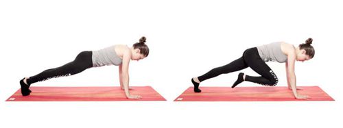 登山者:从这个位置,您将左脚从地面释放,弯曲腿并将其拉到胸部。然后将腿伸展到起始位置并改变侧面。