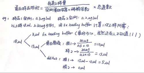 Step5:测完浓度后开始配成等体积等浓度,用于跑wb。推荐上样量20~40μg。10孔推荐上样体积15~20μl。因为我们实验室用的6×loading buffer,为了方便计算,我一般上样体积为18μl。若实验室用5×loading buffer,可以上20μl。