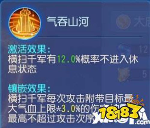 气吞山河:让大唐有了成为永动机的可能。一个可以连续横扫的大唐是很恐怖的,杀气诀只有五回合的时间,不气吞只能扫两次,一旦气吞,可以大大加快进攻节奏,甚至可以直接奠定胜局。