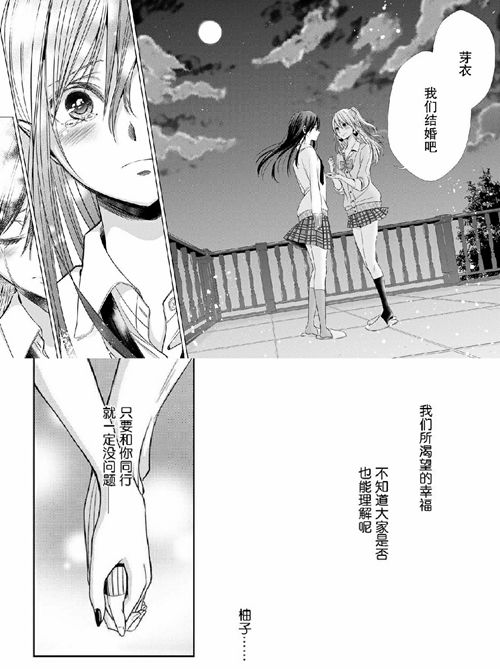 在最后的最后,剧情其实真的没有什么加以分析或者揣测了,所以我选择用事实来说话,事实胜于雄辩。最终,我们看到了芽衣向柚子敞开了心扉,看到了芽衣哭着向柚子亲口说出自己无法从心里彻底赶走柚子,越是想要忘记反而越是想柚子的时刻更多。“在我的视角来看”,最终芽衣向柚子敞开心扉,正视并接受了柚子那真挚的情感,没有像以往一样逃避,这一切就是芽衣的成长。也就是“你们”想要的成长。芽衣绝不是像“某些人”所说的那么绝情,40话中芽衣在教学楼偷看柚子,就是体现出她忘不掉柚子的细节(如果真忘记了,不就连都看都不看了吗?),加速婚约也如芽衣所说是为了忘记柚子。我们所看不到的芽衣的痛苦难受,不代表就没有(我偏向于篇幅不够描写),因此这一定不代表芽衣就是多么多么绝情的人。我们看到芽衣穿婚纱痛哭时不要忘记柚子痛哭,看到柚子一人痛哭时也不要忘记穿着婚纱痛哭的芽衣。