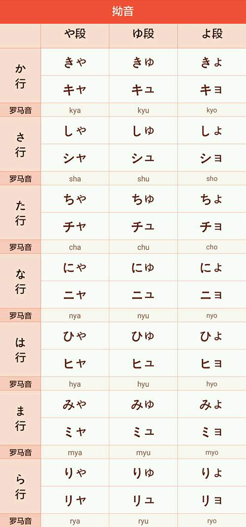 拗音其实只是简单的发音规律,根据所学的清音和浊音等便可直接拼出来,虽然是两个假名组在一起读,但读的时候一定注意要读成一拍