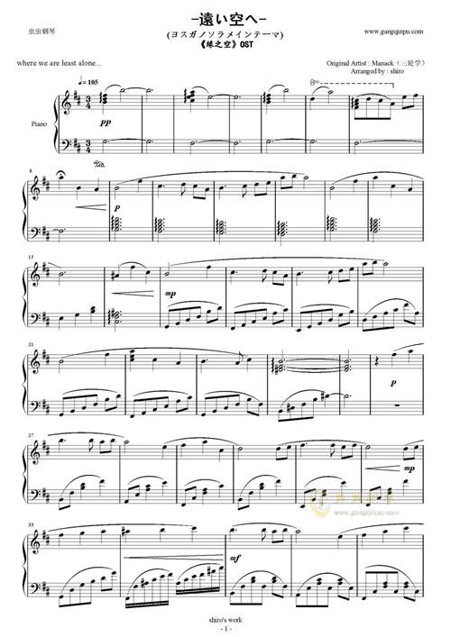 以上就是((缘之空)飞向遥远的的天空,遠い空へ,钢琴谱)全部内容,收藏起来下次访问不迷路!