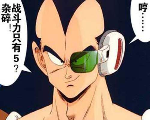 出自龙珠孙悟空的哥哥拉蒂兹之口,起因是初到地球的拉蒂兹正好被一个农夫发现,战斗处理器显示只有五的战斗力。