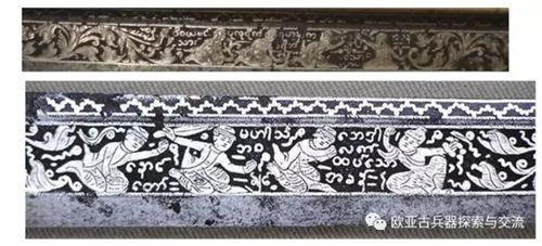 刀身靠近柄还会有主人名或者祝福词等。但缅刀鋄银工艺与中国传统鋄金银工艺有不同,鋄银时为刀身全部打网格后再鋄金银。