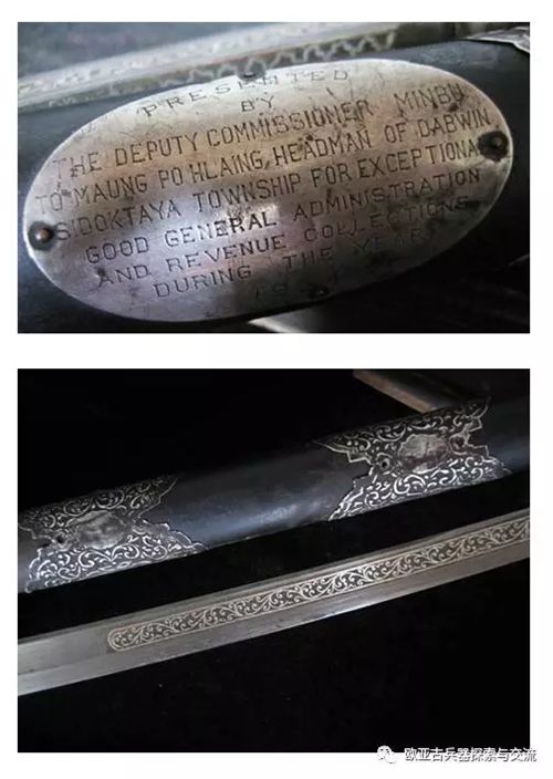 同时这些缅刀刀鞘上多有颁奖铭牌。例如上图这把,即为英军敏步地区副总指挥赏赐麾下地方行政长官所用。这些作为颁奖的缅刀保存状况有的十分不错。