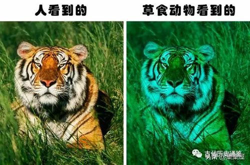 人类可以看到五颜六色的原因在于,人类的眼睛可以区分光谱三原色。而在动物世界,它们所看到的世界与人类是存在差异的,比如食草类动物,对于它们而言,橙色看起来就和绿色想近。因此们作为拥有这种毛发的老虎,它们事实上可以很好的隐藏在绿色植物中。