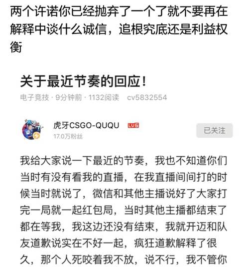 我是QUQU的老观众,现在还不能忘记他在三年前,直播规模只有现在一半的时候,主动送我一张上海WESG的门票。这是不敢想的,我当时只认识他差不多一年,他只知道我的网名。如此乐善好施,重视友情的人怎会财迷心窍?况且QUQU现在成家立业,人老奔三,各面负担越来越重,用钱之处越来越多,参加一个红包局,凭自己的劳动赚钱与“贪”有何干?