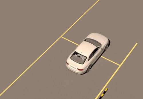 7、最后一个点,就是左后视镜与停车线平行,就停车即可!