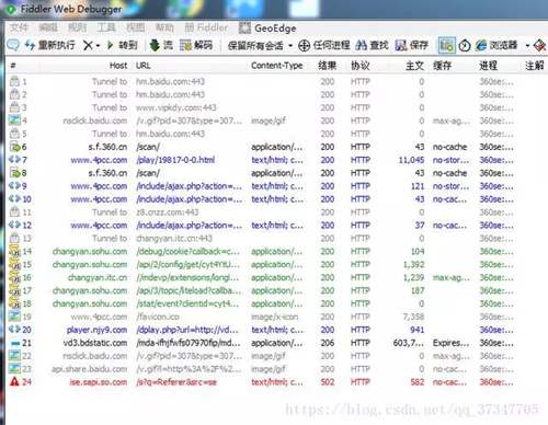 用fiddle抓取主要的视频。下图就是抓取时候产生的相关信息。