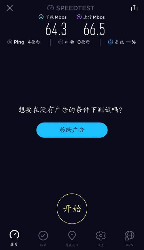 若连接光猫自带2.4GWiFi, SPEEDTEST网速测试经常连50M都跑不满。若连接路由器 WiFi,测试网速可达到60Mbps以上。