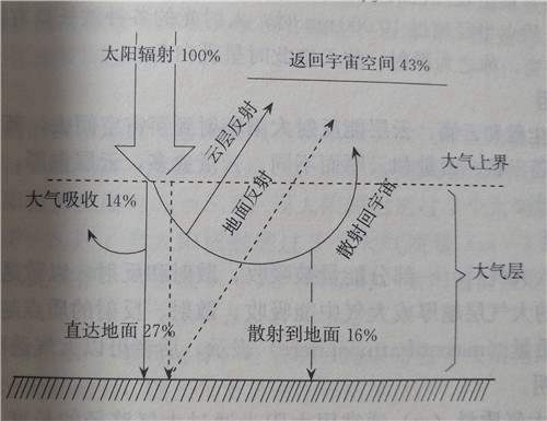 到达地面的太阳辐射中,虽然直接辐射比散射辐射强,但直接辐射中的光合有效辐射仅占37%,而散射辐射中光合有效辐射占50%-60%,所以散射辐射更容易被植物吸收利用。(所以对植物而言多云天气未必不如万里无云的晴天)