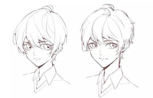 男生的眼睛,相对上一种,更细长一些。如果要想把角色画得凶一点,可以让眉毛与上眼睑的距离贴近,眉毛的走向则从下往上走。