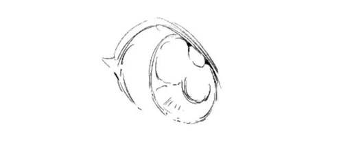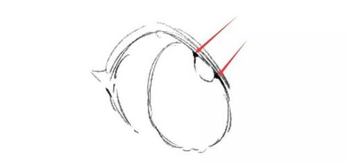 一般传统美少女的眼睛,是比较大比较圆的。在勾画草稿时,不用画得太仔细,可以大概勾勒出眼睛的结构。