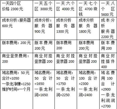 所以通过此教程相信大家也大致心里有个数了明白了到底传奇一条龙开服价格的一个答案了 当然以上一些数值大家可根据真实情况而定。