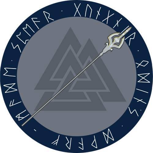 外圈鲁纳文意为“冈尼尔,奥丁所持侏儒之矛”,中间扭结的三角形是奥丁的专属标记