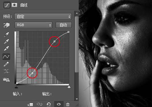 配合柔光模式,增强其对比,加大明暗反差,强化人物皮肤瑕疵细节的显现,却不像叠加模式过之。第3步,在曲线的亮部和暗部进行提亮和压暗,增加画面对比度。