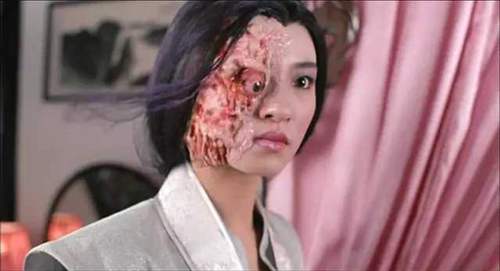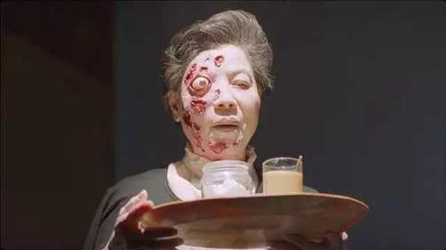 关于恐怖元素的设定,片中戏仿西方吸血鬼的尖牙,颇有《终结者》风范的烂脸妆,其实都代表了当时港片博采众长的创意能力。