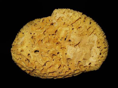 Spongia officinalis,被称为浴海绵,是第一种商业上使用的海绵。它曾经遍布地中海的海底,但是因为过度的摘取捕捞让这种生长极为缓慢的动物消失殆尽——一块和你洗澡时候用的打泡球一样大小的沐浴海绵可能需要将近40年才能长成。