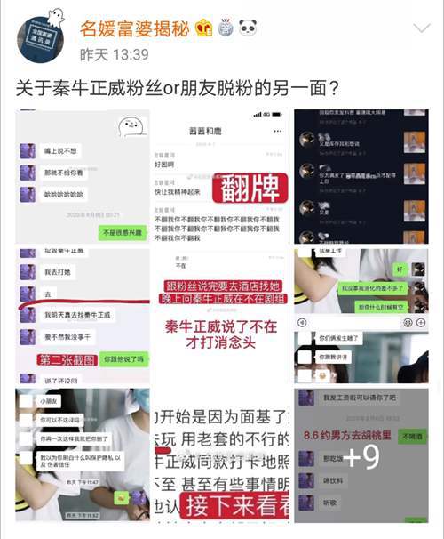 结果因为被秦牛正威的一位男粉欺骗了感情,想找她哭诉被拒绝,在微博发自己和秦牛正威的语音聊天记录,但秦牛正威怕被说私联,而拉黑了这位粉丝,并踢出粉丝群。事后该名粉丝从其他人那得知那名男粉和秦牛正威私下更是羞辱贬低自己,等等一系列原因,最终脱粉。