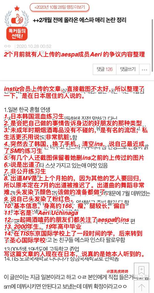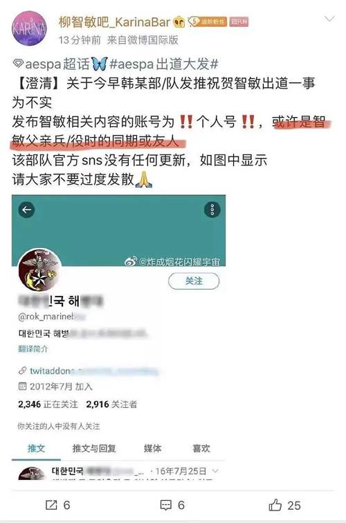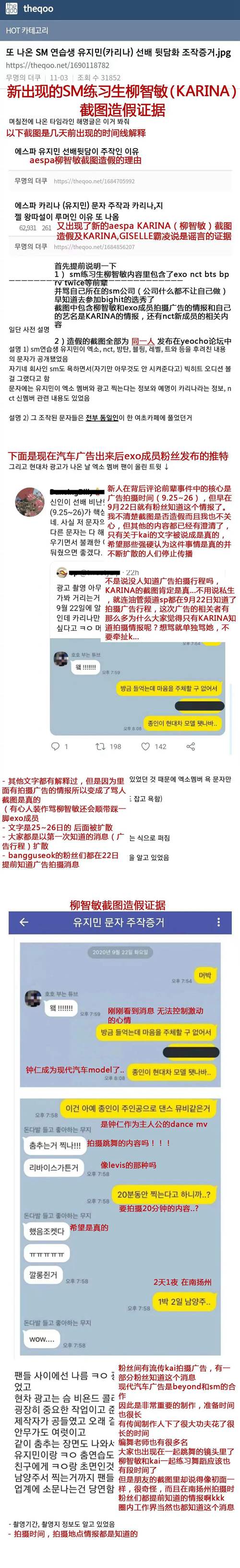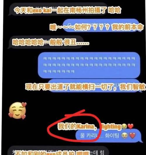 粉丝的解释也有一定的道理,不过虽然聊天记录截图这个东西本身就可以随时推翻,但“Karina”这个艺名,除了SM内部的工作人员和艺人本人,想要造谣的普通人应该很难轻易知道吧。