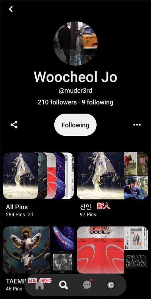 SM视觉总监在创意网站上的账号也被扒出,分门别类地按照SM艺人的名字收藏了他人的素材,aespa的设计风格也与文件里其他设计师的作品有极高的相似度。
