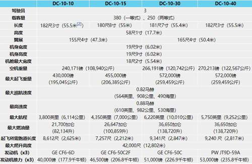 在DC-10-10上增加了起飞重量和航程,机体缩短了0.3米,并改用长程版DC-10(DC-10-20)的油箱配置和使用效率更佳的通用电气CF6-50C,增加一组起落架,最大航程11,050公里,载客270~380人。DC-10-30亦有DC-10-30客货互换型及DC-10-30F全货机型。荷兰皇家空军的三架KC-10加油机就是由此款客机改装而成,但在拆除油缸后仍可用作人员输送。
