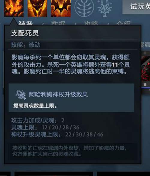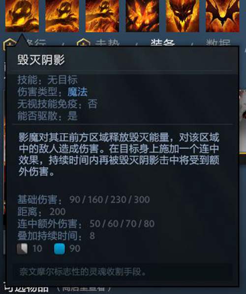 被动:每正补或反补可以收集一个灵魂,可以加两点攻击力,有上限,这就是影魔为什么顺起来可以无敌的原因,补刀越多攻击越高。死亡掉落一半灵魂。