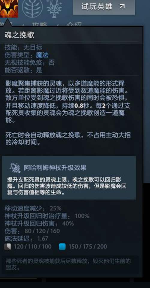 主动:dota2最恐怖的事情莫过于走着走着,被一个隐身的影魔摇大摇死。在魂满的情况下是可以秒人的技能,但位置要判断的好,现在较之前增加了恐惧的控制,可以轻松配合三连影压完成击杀。