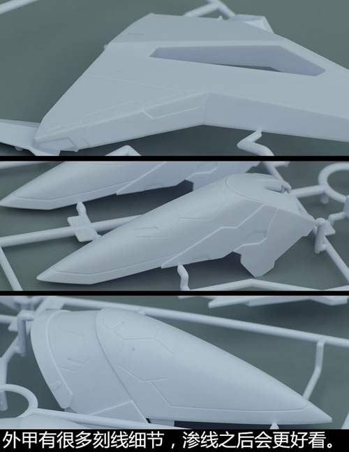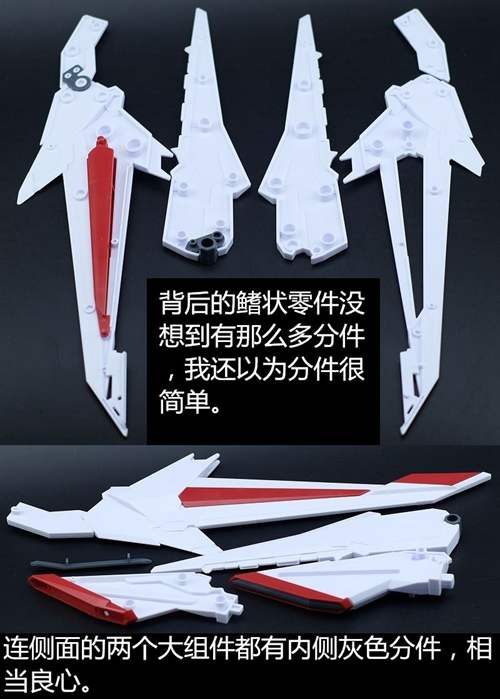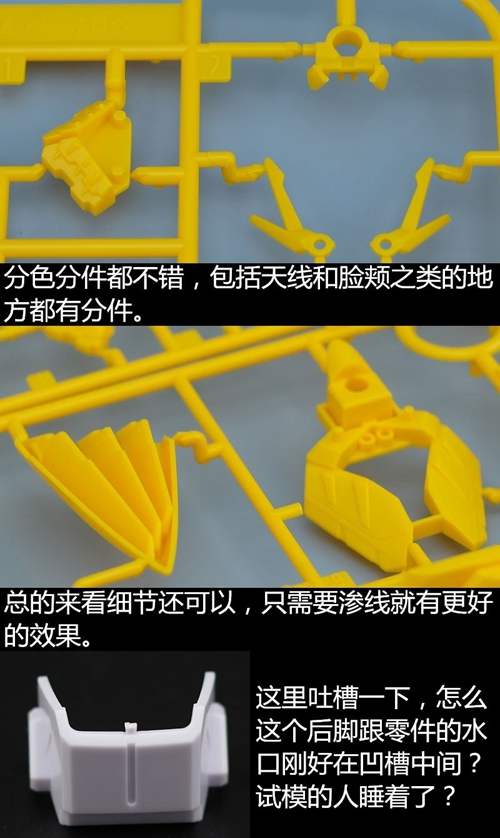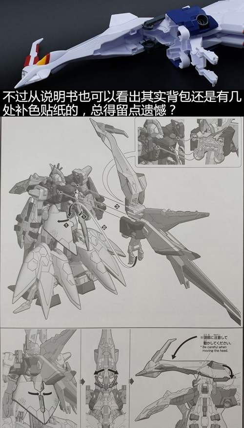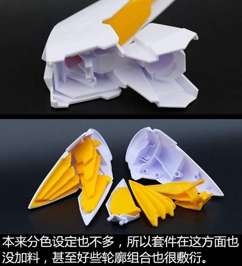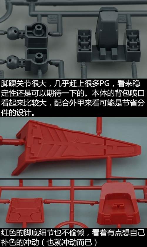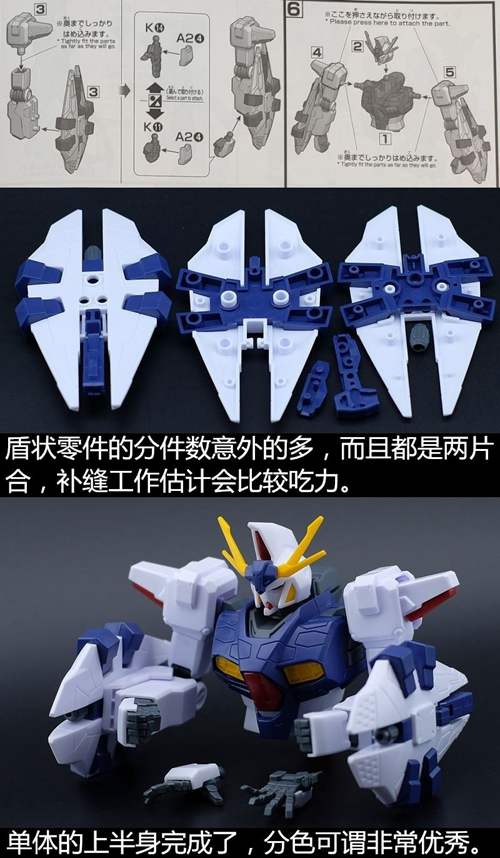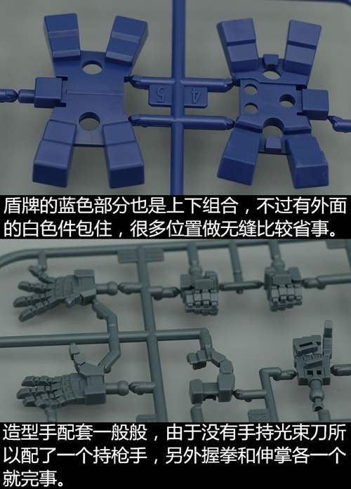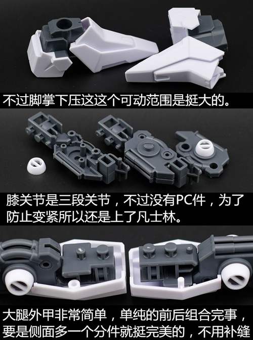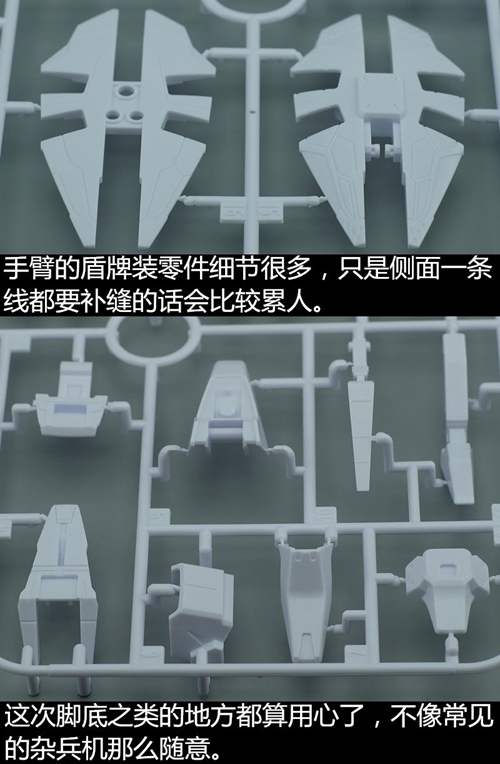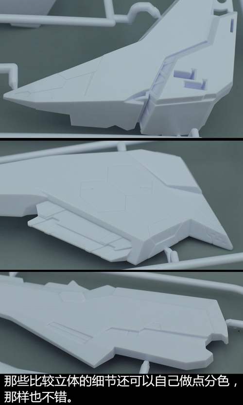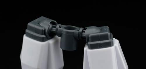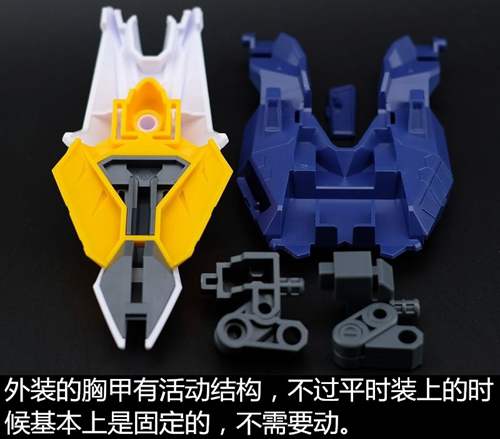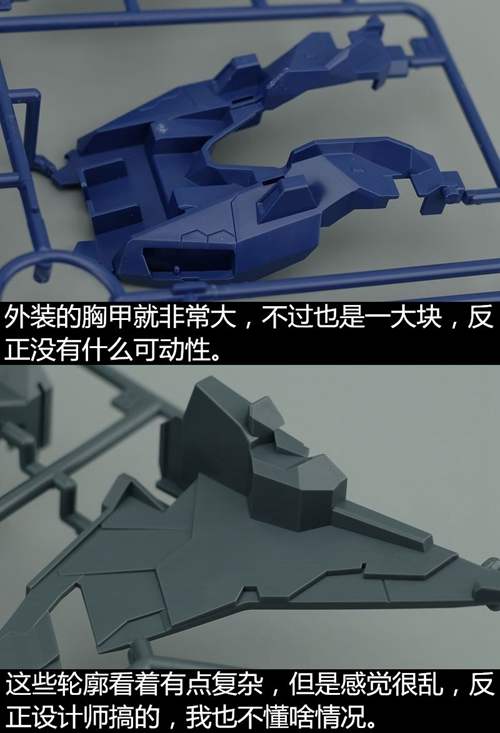说一下整体设计:这个套件单体状态可动性还可以,但是手臂肘关节会显得比较生硬,好像为了提高可动性硬生生加了一个不受力的小关节一样,后面看上去很温和,不过把玩起来倒是没啥,如果不打算拆外装的话这个肘的小关节上胶水粘死更好。可动性什么的,套上外装之后基本上等于没有,充其量手臂动动肘关节乱甩几下而已,旋转的肘关节也就单体好用,这个状态之下玩近身战基本上不指望手臂有多大作用,反而肩膀上面的两门炮口可以兼具光束刀用途让某肉感到好奇,以前玩高达战争宇宙这个游戏的时候,肩膀上面的炮是散弹炮。。。。。。。