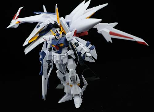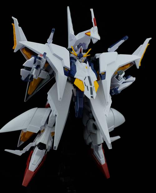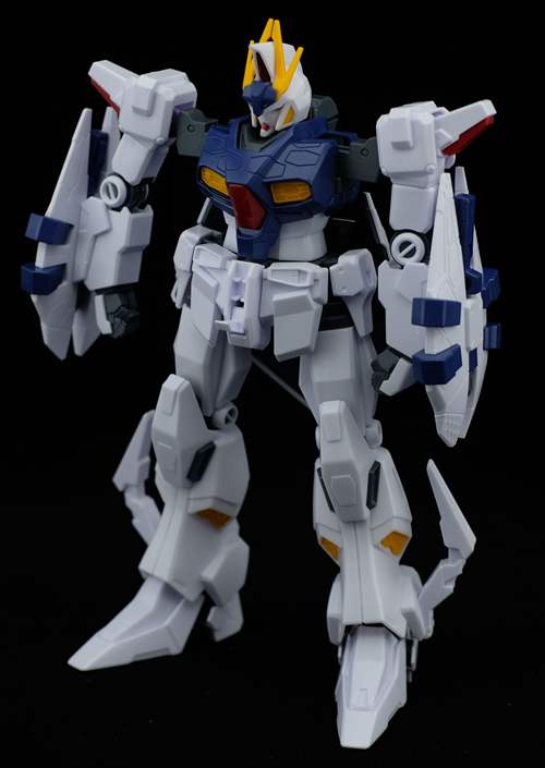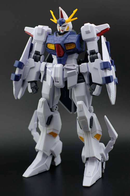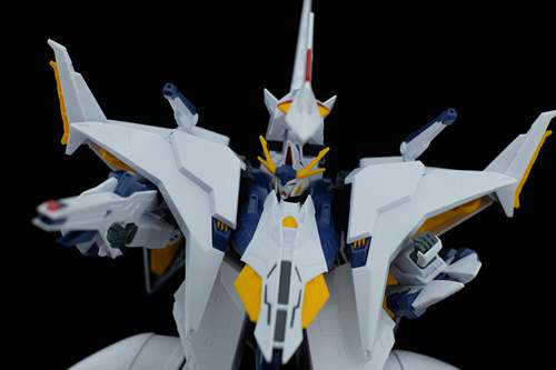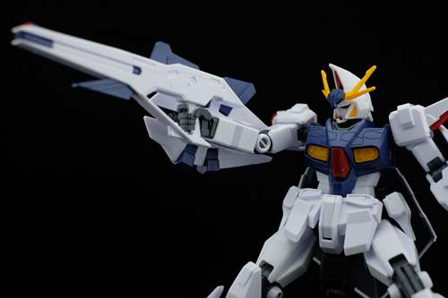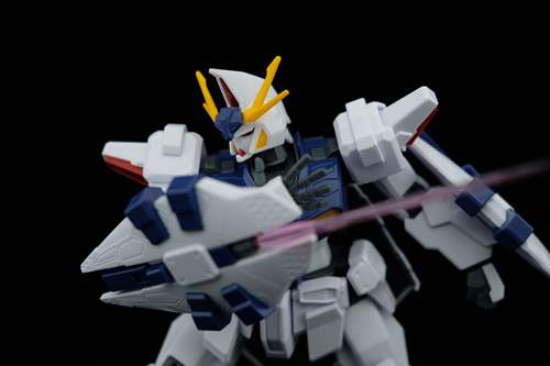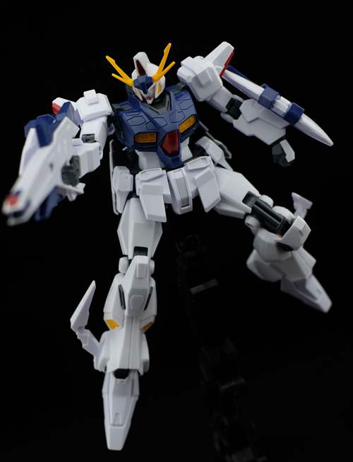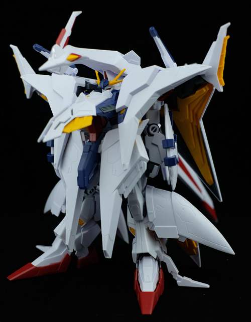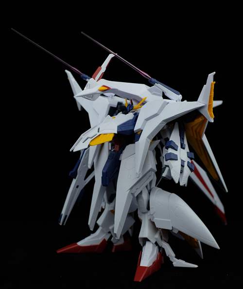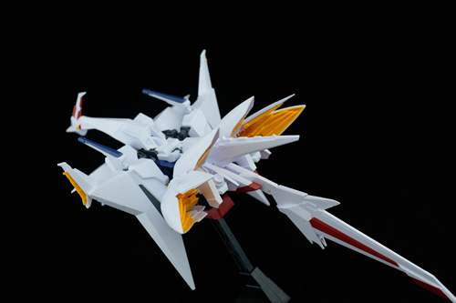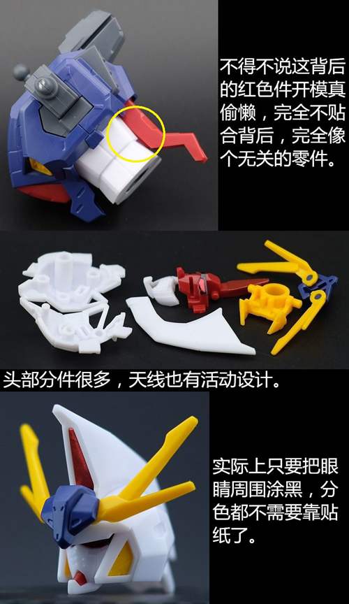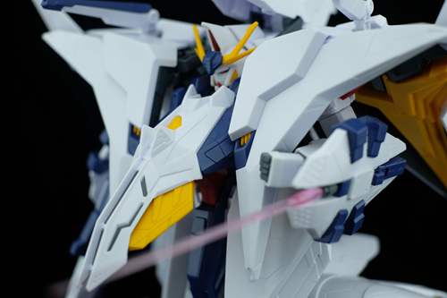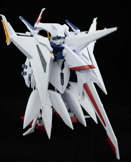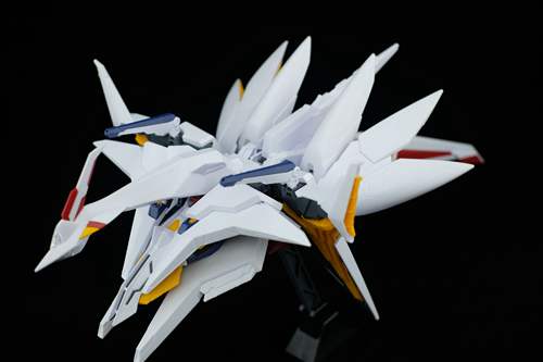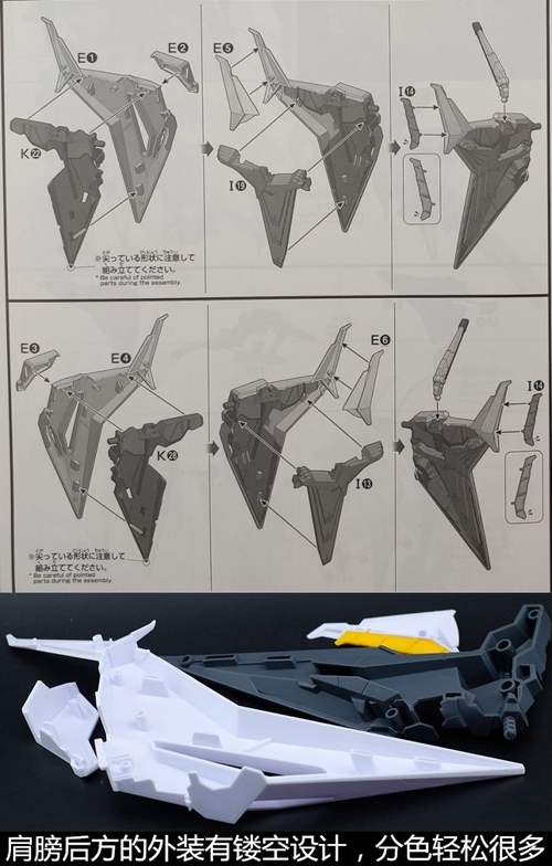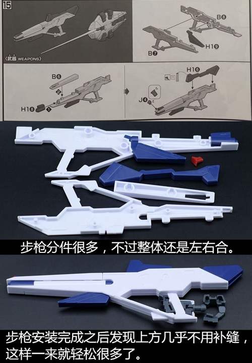 说一下整体设计:这个套件单体状态可动性还可以,但是手臂肘关节会显得比较生硬,好像为了提高可动性硬生生加了一个不受力的小关节一样,后面看上去很温和,不过把玩起来倒是没啥,如果不打算拆外装的话这个肘的小关节上胶水粘死更好。可动性什么的,套上外装之后基本上等于没有,充其量手臂动动肘关节乱甩几下而已,旋转的肘关节也就单体好用,这个状态之下玩近身战基本上不指望手臂有多大作用,反而肩膀上面的两门炮口可以兼具光束刀用途让某肉感到好奇,以前玩高达战争宇宙这个游戏的时候,肩膀上面的炮是散弹炮。。。。。。。