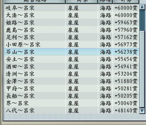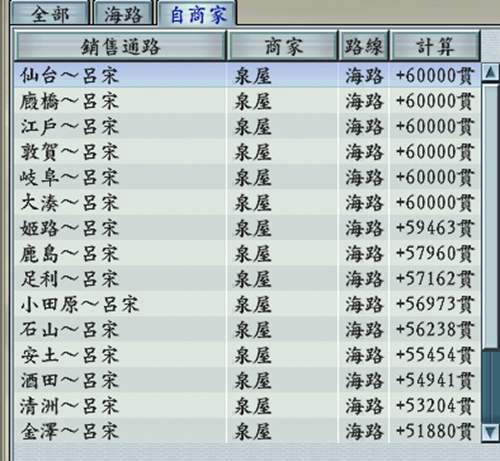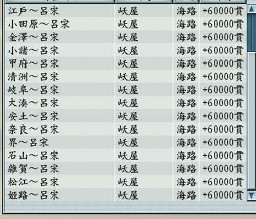 1(重要性高)、该町所在国的城池数目(城池人口,规模,安定等)。即城池数目越多,每个城人越多,规模越大,越安定,连接该町和海外的销售通路稳定收入越高。