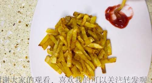 3、薯条可以配番茄酱吃,喜欢吃的盐的也可以在薯条上撒点盐,看各人喜好