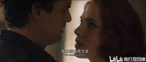 除此之外更重要的对白就在同步影片不远的后面,寡姐安抚内心动荡犹豫班纳时,表示自己愿意跟着感觉走,跟着班纳,可以远离纷争,远离世界,只不过被班纳所拒绝了。当然这并不表示班纳对娜塔莎是没有感觉的,只是顾于自己的身份和使命,更觉得自己因为体内浩克的存在,到哪里都可能是一个“威胁”,所以无奈的隐藏了自己的真实意愿。