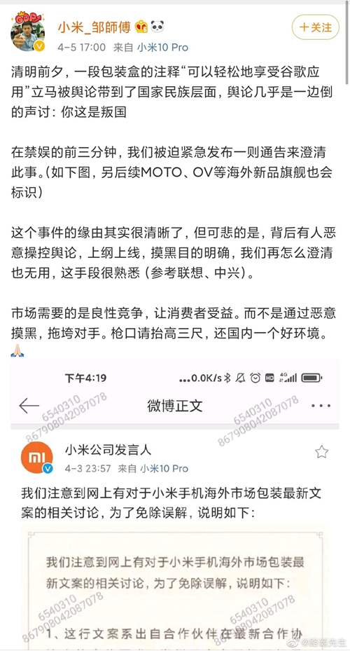 这件事从4月3日晚上开始由外网某平台的一张米10Pro海外版,因为包装上印有“with easy access to the Googleappsyouusemost”一句意为:“能够轻松访问你最常用的谷歌应用”的话引发的热议。按照某些kol的解读:“你这是落井下石,不顾大局,现在HW被美国打压......”那么真实的情况又是怎样的呢?