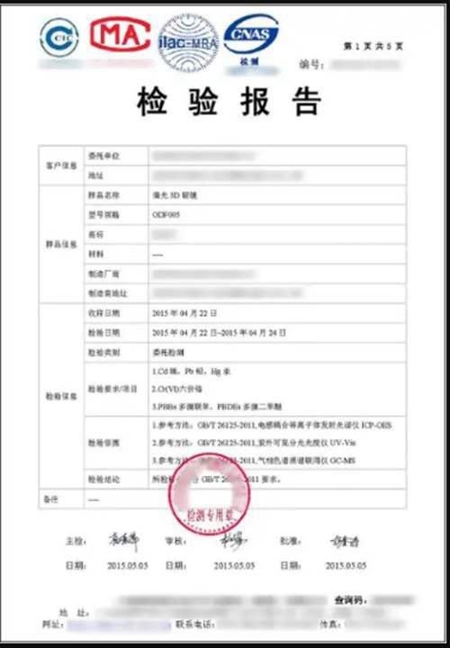这类产品质检报告是做产品的化学环保测试,报告模板如下所示:
