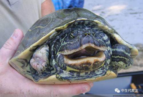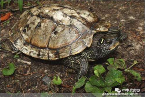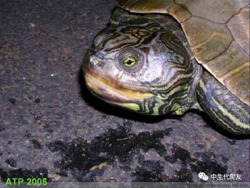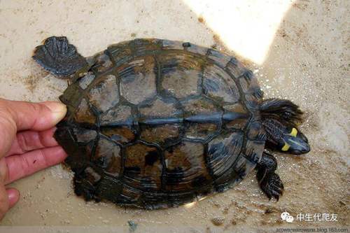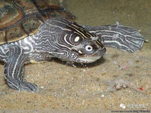 ▲黄斑地图龟这种地图龟是一种体型为中小型的地图龟,通常成体雄性在3.5到4.5英寸,而雌性在5到7.5英寸。这种地图龟属于地图龟里面头部比较窄的一类,相比之下,更喜欢以昆虫为食,当然,它们也是可以以鱼类和甲壳类动物为食。黄斑地图龟有典型的地图龟的中部的棱的特征,头部有比较明显的花纹,背甲的盾片也有比较明显的黄**案。腹甲有5条横线,也没有复杂的花纹。同其他地图龟一样,这种龟也喜欢晒背,生活在沙流或泥泞的河流中。常常栖息在掉落在河里的树枝上。它们在白天会花大量的时间在晒背上。另外,黄斑地图龟的种群状况不容乐观,其野生种群数量有下降趋势。现在黄斑地图龟已经被收录在《美国濒危物种法》中。