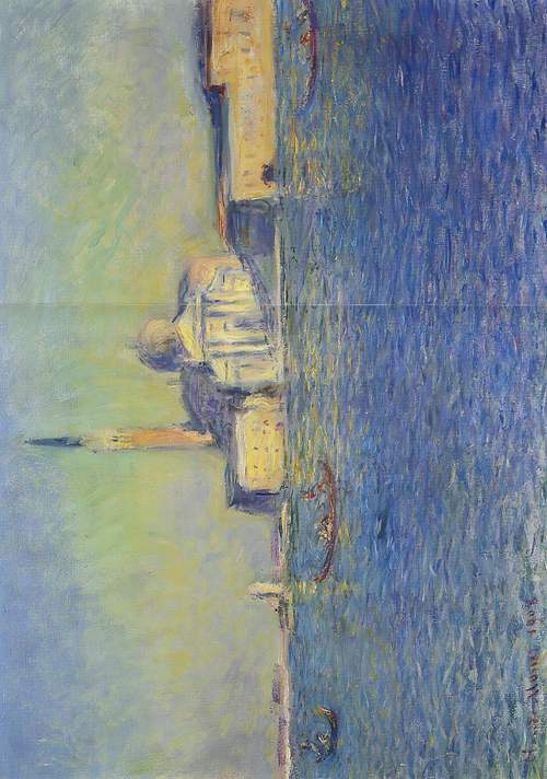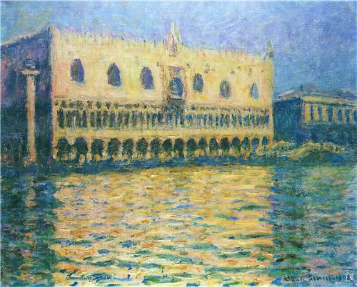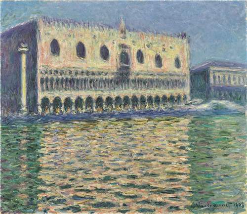 莫内在威尼斯期间共创作了三十七幅有关威尼斯的画作(我有几幅找不到了),主题包括了大运河、圣乔治·马焦雷岛、德拉塞露河,达理奥宫、穆拉宫、康塔里尼宫及总督宫。那年的12月19日,也就是莫内刚回巴黎后的几天,画商伯恩海姆·冉内就一举买下这三十七幅威尼斯画作中的二十八幅,但莫奈并没有马上把画给他,而是把其中绝大部分的画留在画室进行后期润色。这是因为莫奈约到晚年,他对自己作品的要求就越发的严苛,甚至会将许多不满意的作品直接毁掉。