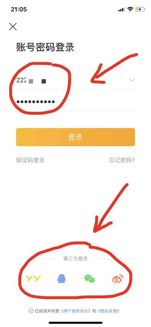 在这里输入账号密码 也可以使用下方的第三方登录哟!