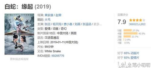 简介:《白蛇:缘起》是由追光动画和华纳兄弟共同制作的动画电影,由黄家康、赵霁执导,张喆、杨天翔、唐小喜等配音,于2019年1月11日在中国内地上映。影片在中国民间传说“白蛇传”基础上有所创新,讲述白素贞在五百年前与许仙的前身阿宣之间一段刻骨铭心的爱情故事。