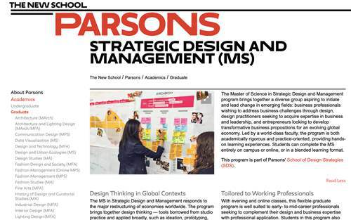 在帕森斯有策略设计研究生的专业,和本科的名称一模一样,不过它是master of science,大概的内容和方向跟本科差不多。但由于是研究生的专业,各方面的要求都会高一些。
