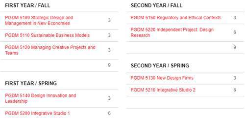 Strategic Design and Management in New Economies:这门课程介绍新经济时代外部环境的情况、复杂性和形成条件。新经济时代提供了机会和挑战,以及对设计密集型和创意型公司的领导和创新的新要求,如何设计、管理和改进需要新的设计管理能力。学生将调查创意产业领域正在进行的转型的各个方面和角度,并将通过在该领域的开创性作品展示研究和批判。