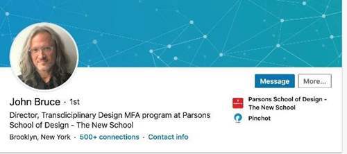 举例来说,上面其中一位是当时教授我的老师Brain,他自己有个公司。我们每周三晚上7点上他的课,上两个小时到9点40。因为他白天要上班工作,只有那个时间有空给我上课。他一学期只有这一门课,备课也只为了这门课。对这些老师来讲,他们真的想做教育这件事情,而不是多一份工资。这样的老师是真心想要去教我们一些东西,也会很认真地回答我们的一些问题。所以对帕森斯的师资我是非常有信心的,他们真的很棒。