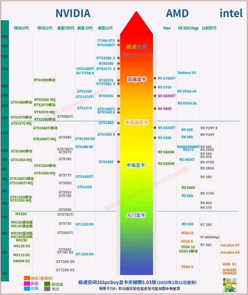 对于小白来说真正需要关注的只有两个部分:处理器和显卡。这两个是决定你电脑性能高低的重中之重,其他几项只要合理搭配能用就行。在装配一台电脑之前你首先需要明确自己的定位,是家用办公,还是普通网游,甚至是发烧级游戏玩家,明确了这一点你才可以根据定位选择符合自己要求的处理器和显卡。以下是2020年的处理器和显卡天梯图。买电脑之前一定要先看看自己的处理器和显卡在天梯图上排什么位置,免得被坑。