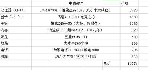 5:土豪配置,无脑上最好的处理器和显卡就行,I9-10900K加RTX3090,锐龙3990X线程撕裂者配泰坦rtx,这个配置你想干啥都行。