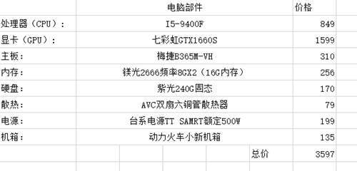 3500预算,I5-9400F加1660S,什么游戏都可以玩,经济实惠: