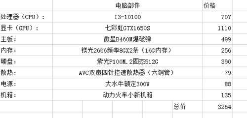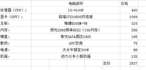 2500预算,I3-9100F加1650S,网游通杀,大部分单机游戏中低画质可玩: