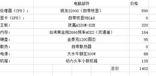 低端配置,预算2000,适用于LOL、穿越、逆战等网游,吃鸡中低特效可玩: